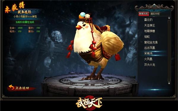 除此之外,配合小鸡小鸡副本的全新坐骑也震撼来袭!从此开启《武极天下》便捷交通时代!拥有史上第一呆萌可爱的契约兽“呆萌鸡”,不仅让你成为人群中的焦点人物,骑上它你将不再受场景的限制,可以在地图中肆意奔跑、自由移动,感受别样的武极天下!