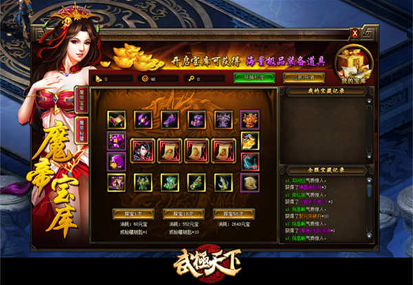 满载而归不是梦,极品至宝任你拿!通过《武极天下》PC版探宝系统,你可以轻轻松松获得超级稀有的装备、材料,提升等级战力,让你在人群中所向披靡。