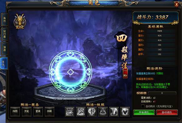 b.阵法达到3阶以上,可各种超强百分比属性附加技能,全面提升人物战斗力!
