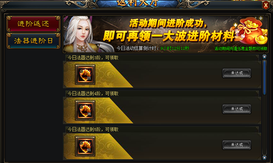 b.进阶日当天达到相应不同等阶立刻返还大波进阶材料,机不可失。
