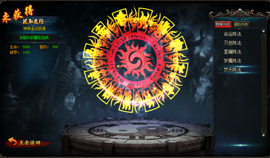 新增5个阵法特殊外形(命运阵法,万世阵法,星耀阵法,梦魇阵法,焚天阵法)