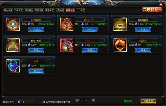 3、商城新增神魂专区,通过神魂可购买商城-神魂专区里的道具。各种珍稀法器碎片,统统抱回家!