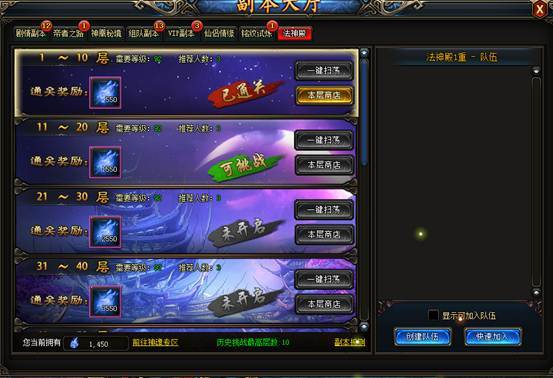 b副本玩法:规定时间内击杀场景内的怪物,击杀完每层怪物可进入下层;每天通过对应层数即可开启本层商店购买特价物品。