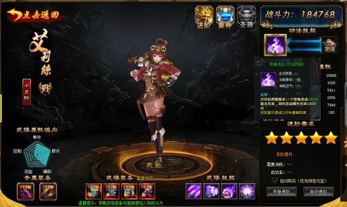 a. 普通攻击和被动都为百分百群体攻击,另外被动对BOSS每秒造成百分比伤害,大幅提高杀怪效率!