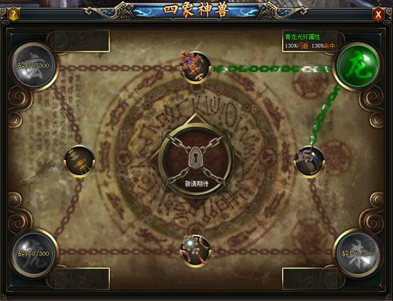 亲们可以通过摆放法器位置的不同,来达到想要提升目标法器属性的效果,与激活的神兽点位相连接的法器,其属性可享受对应神兽的特殊加成光环,该属性永久有效。