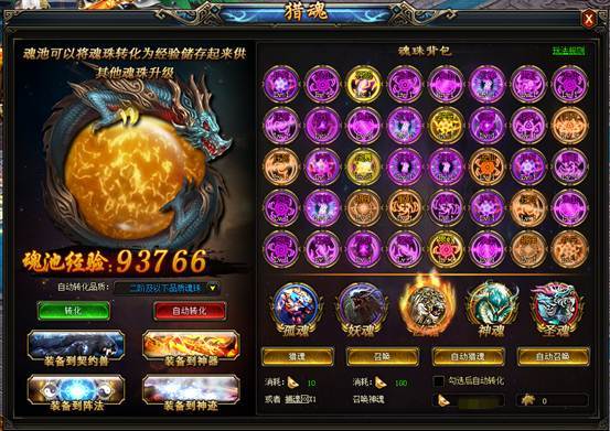 a.通过猎魂或者召唤即可获得大量魂珠,越高品质魂珠属性战力加成越高;