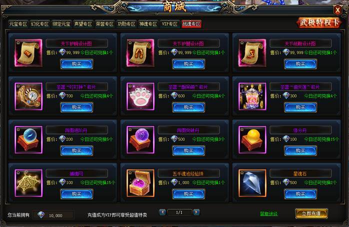 战魂值可用于在战魂商城兑换【天下图纸】等物品