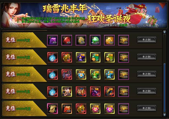B. 充值送豪礼,超值好礼,圣诞巨献!(实际奖励请以游戏内为准)