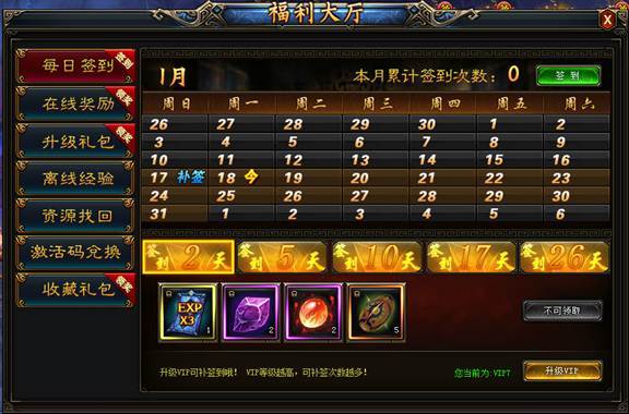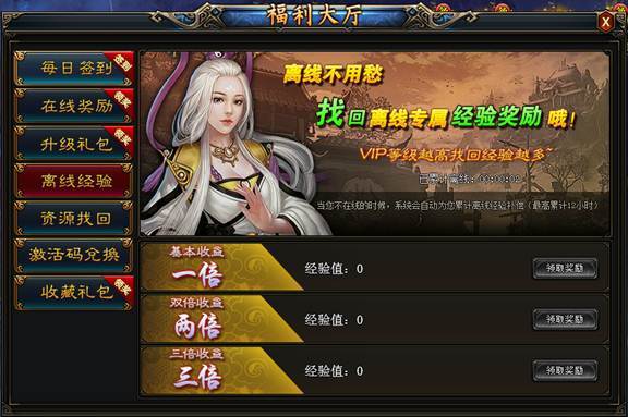 VIP玩家可以领取双倍经验,达到VIP5及以上玩家可以元宝领取三倍经验。