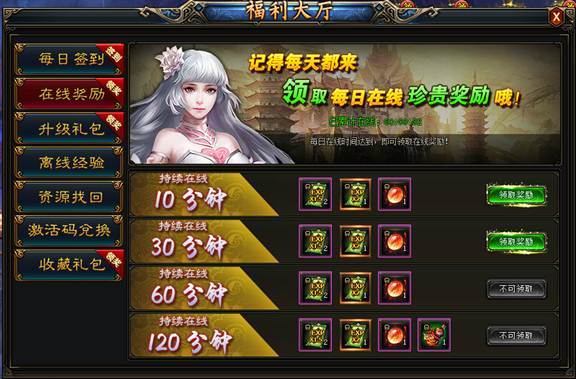 在线达到一定的时间就可以有一次抽取奖励的机会,还有可能获得珍贵道具!