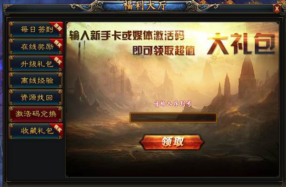 玩家可以在官方网站以及其他媒体网站领取新手礼包和媒体礼包,在游戏里面兑换礼包道具。(游戏礼包通过邮件发放领取)